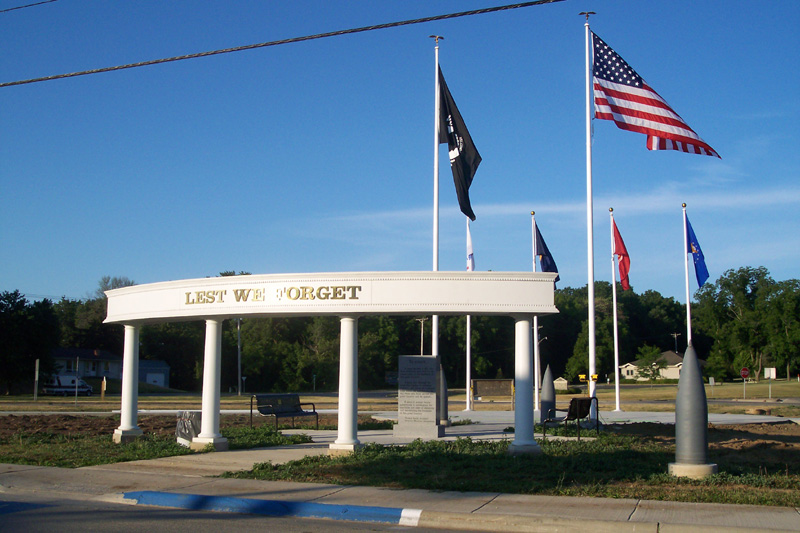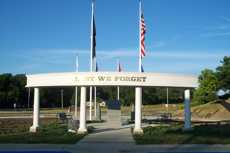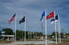 When you enter the park, you will see before you the United States flag and the POW flag. These two flags are flying from 40 foot fiberglass poles. The Dixon V.F.W. Post 540 purchased the American flagpole, while the Rock River Valley Chapter of Vietnow purchased the POW flagpole. The two poles are the tallest flagpoles in the park. We wanted to see the effect that the flags would have on the overall outlook of park, so we flew all of the flags before 4 July 2005. It was our intention at that time to take them down and not put them back up until the park was completed. The positive feedback from visitors and travelers along the Veterans Memorial Park route during the holiday, convinced us that they needed to be kept flying. They have been flying and displayed since that initial presentation.