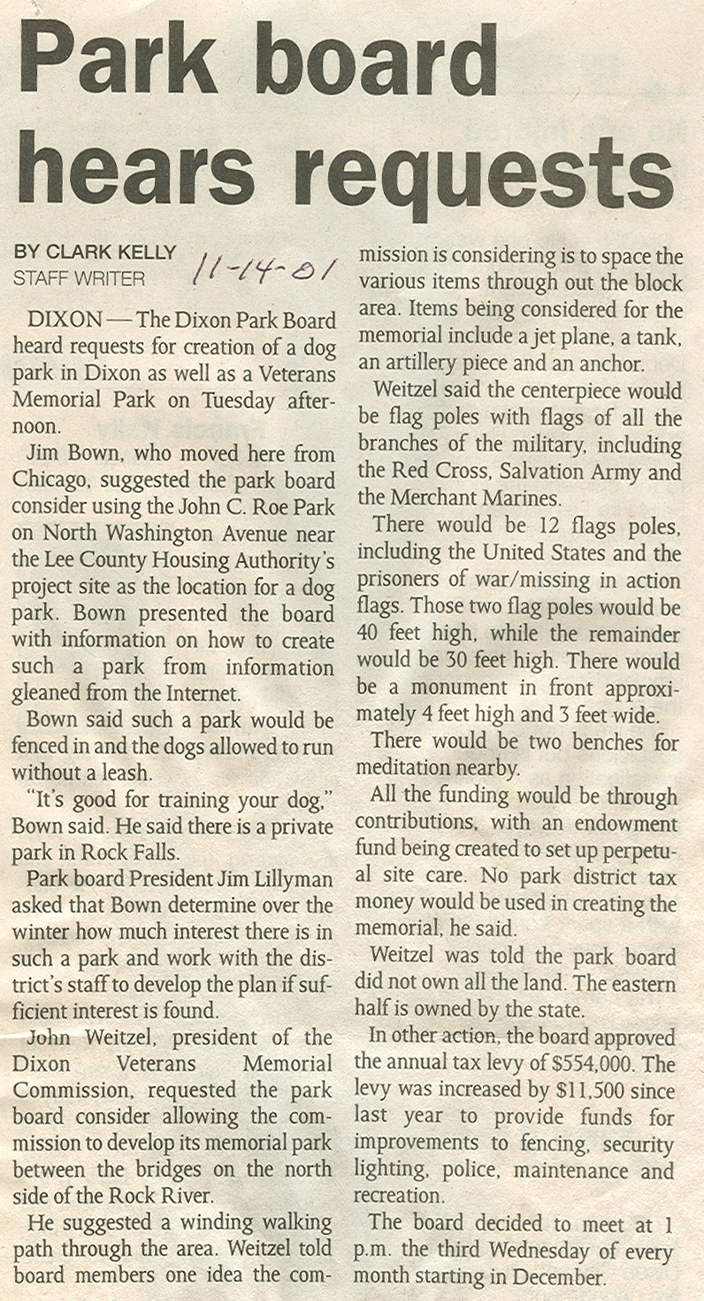 Memorial Parks will Honor Veterans