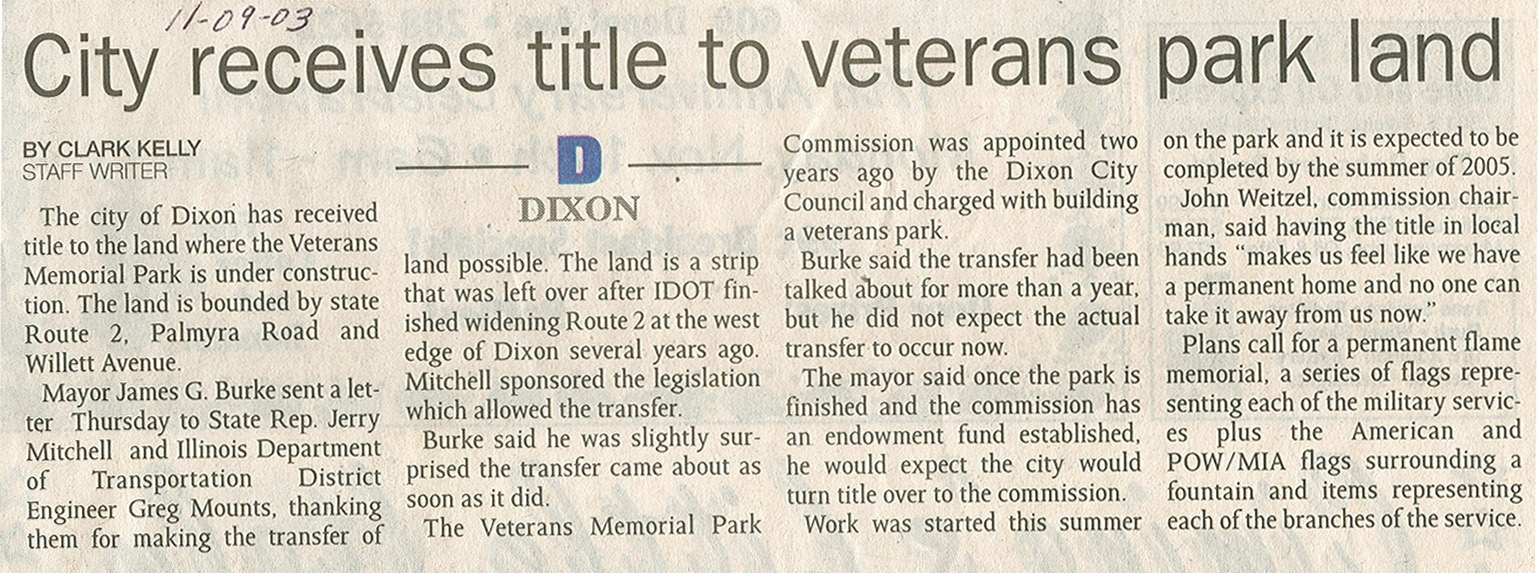 City Receives Title to Veteran Park Land